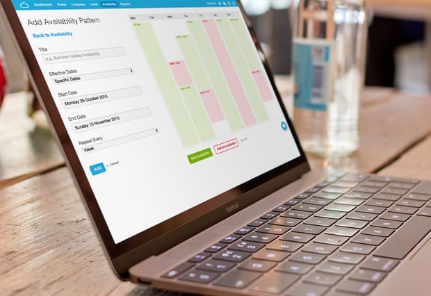Each employee has their own availability calendar, where they can mark their availability or unavailability for a particular date or time frame. They can create as many availability patterns as they like and can choose how often the pattern recurs and whether it is ongoing or ends at a specific date, such as university term dates.
